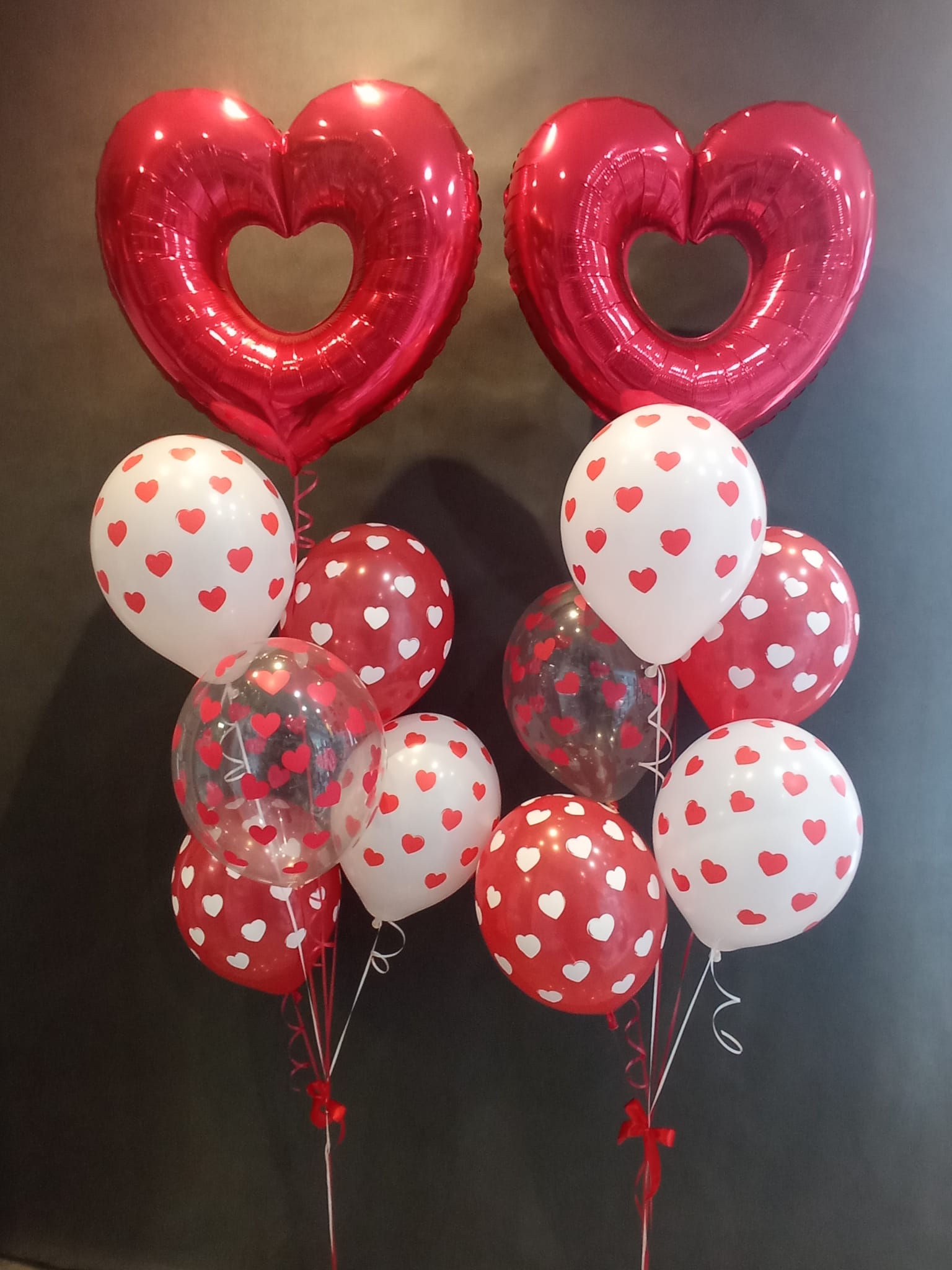 Romantyczna kompozycja balonowa idealna na Walentynki – jako prezent dla ukochanej osoby lub dekoracja sklepu, witryny czy punktu usługowego. Klasyczne serca w połączeniu z balonami lateksowymi tworzą efektowną, przyciągającą uwagę aranżację.