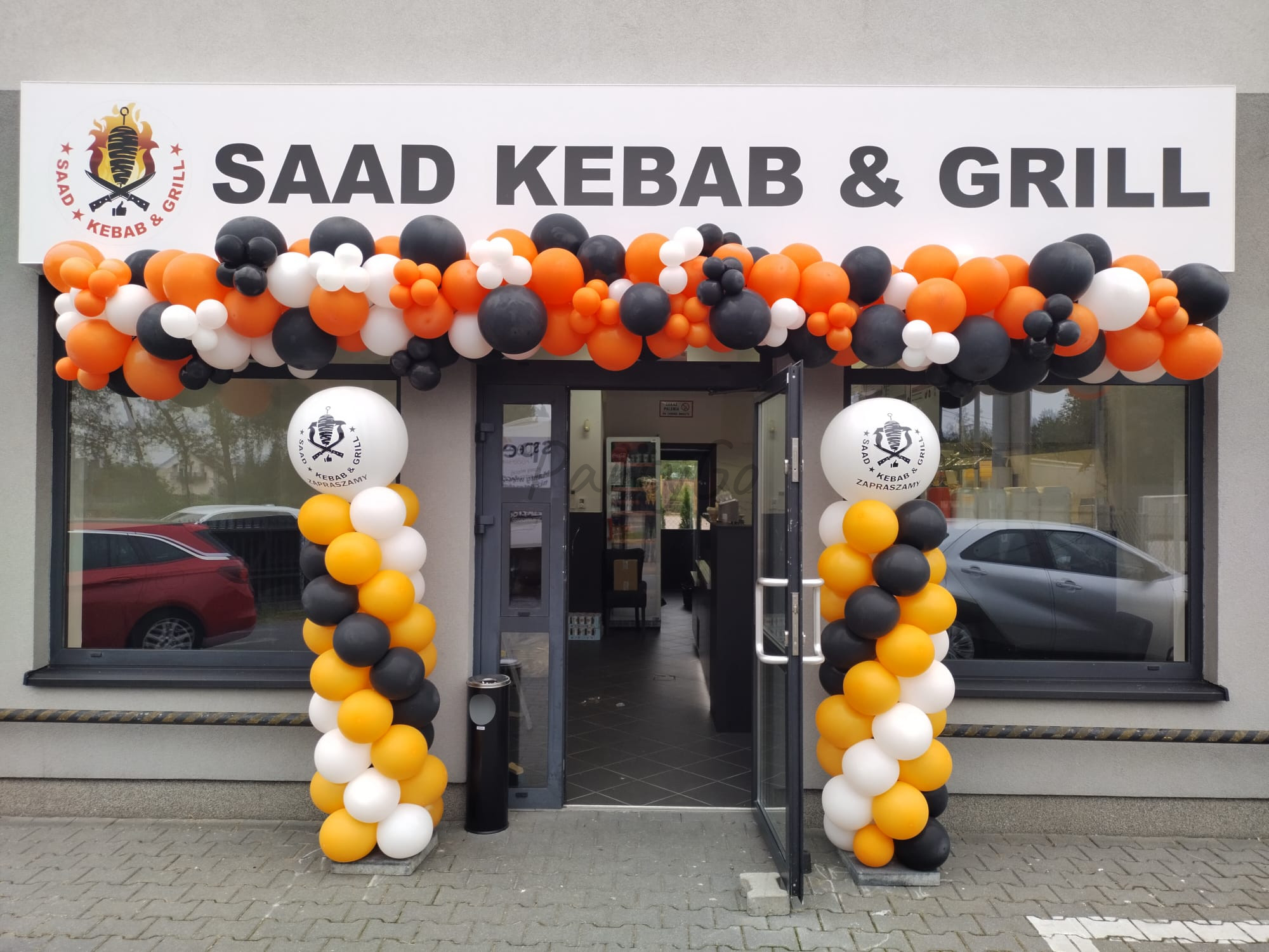 Efektowna dekoracja balonowa przygotowana z okazji otwarcia restauracji. Kompozycja utrzymana jest w kolorystyce dopasowanej do identyfikacji wizualnej lokalu, dzięki czemu całość tworzy spójną i elegancką oprawę wydarzenia oraz przyciąga uwagę gości i przechodniów.