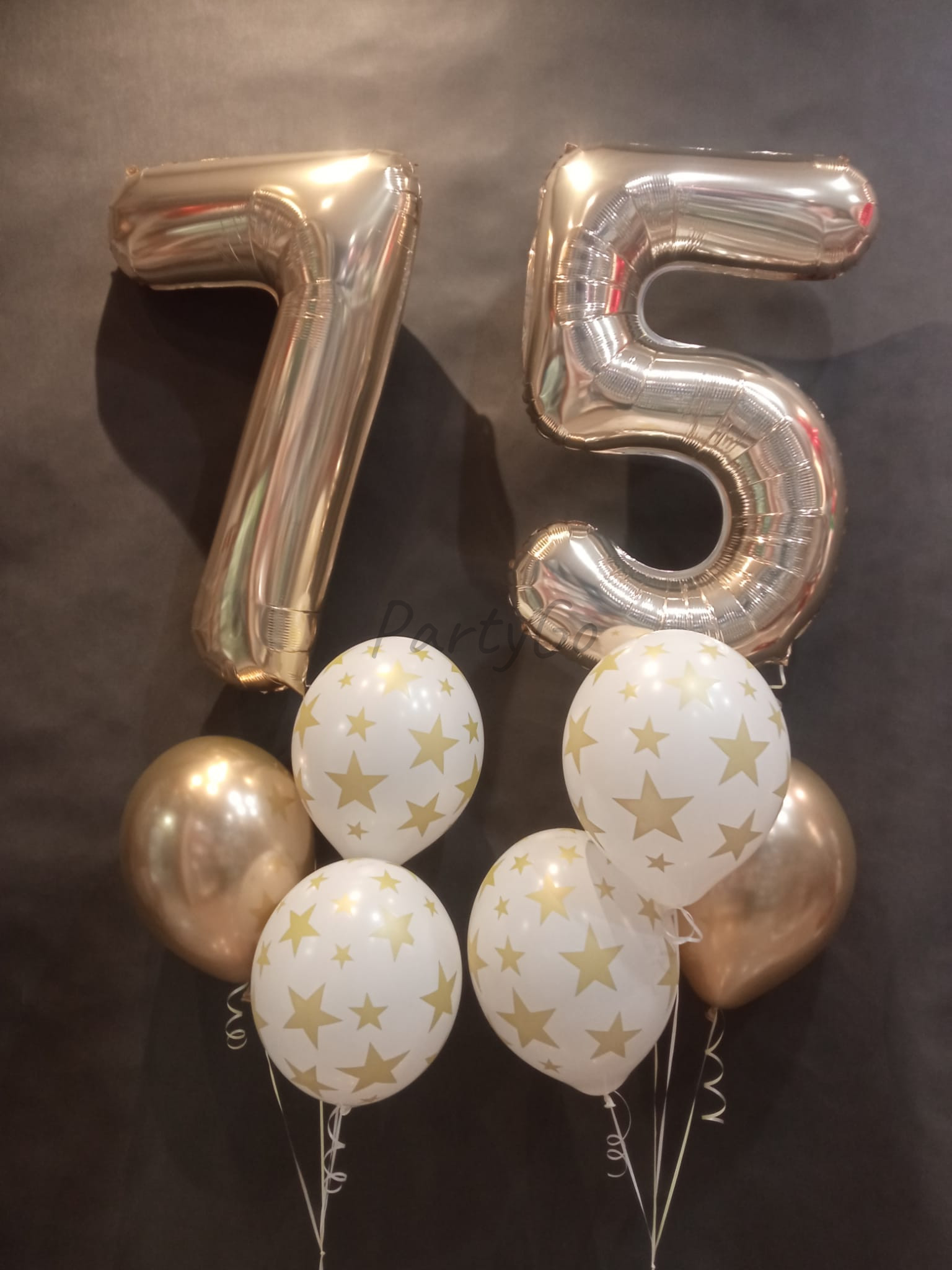 - Balony foliowe cyfry „7” i „5” o wysokości 85 cm