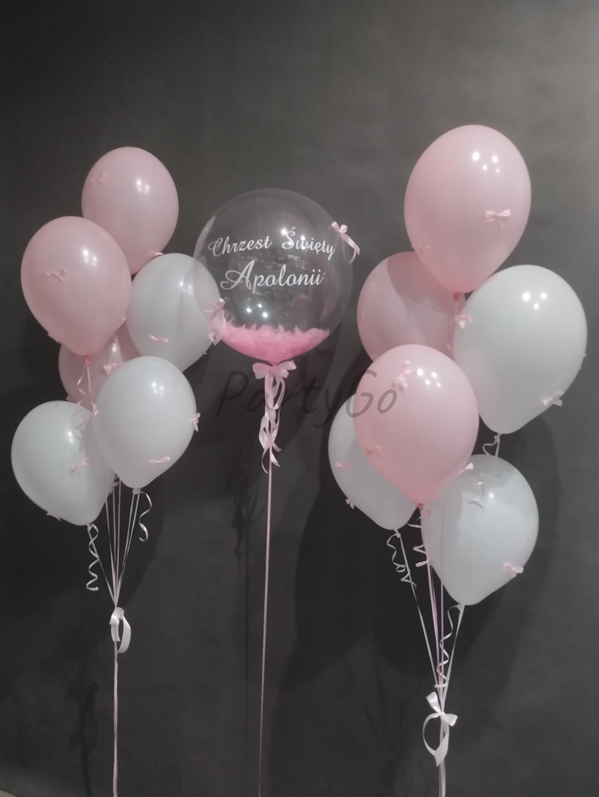 • Duży, transparentny balon z personalizowanym napisem (np. „Chrzest Święty + imię dziecka”)