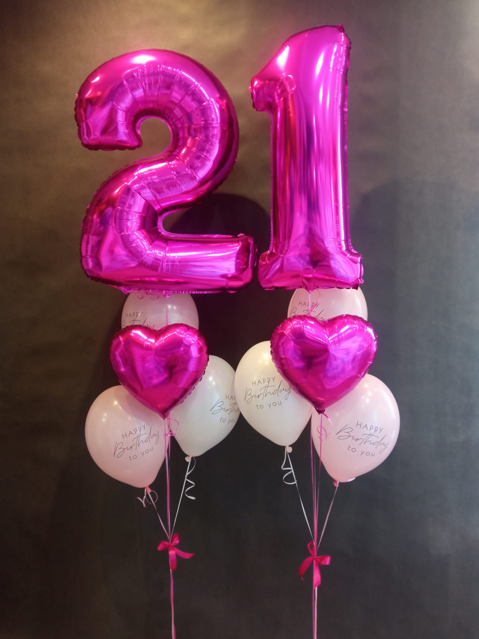 Balony foliowe cyfry „2” i „1” w kolorze fuksja