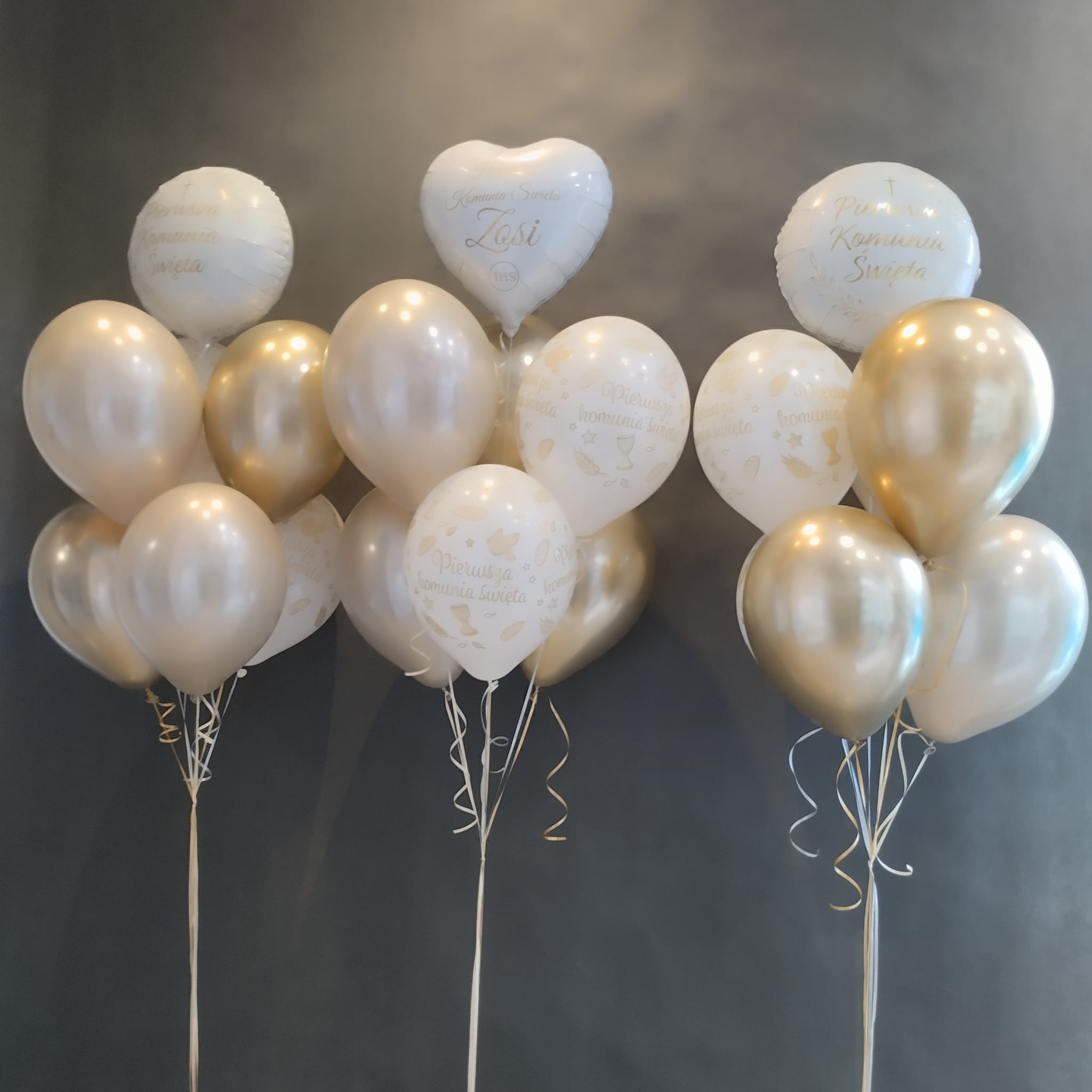 - 2 balony foliowe w kształcie kuli „Pierwsza Komunia Święta”